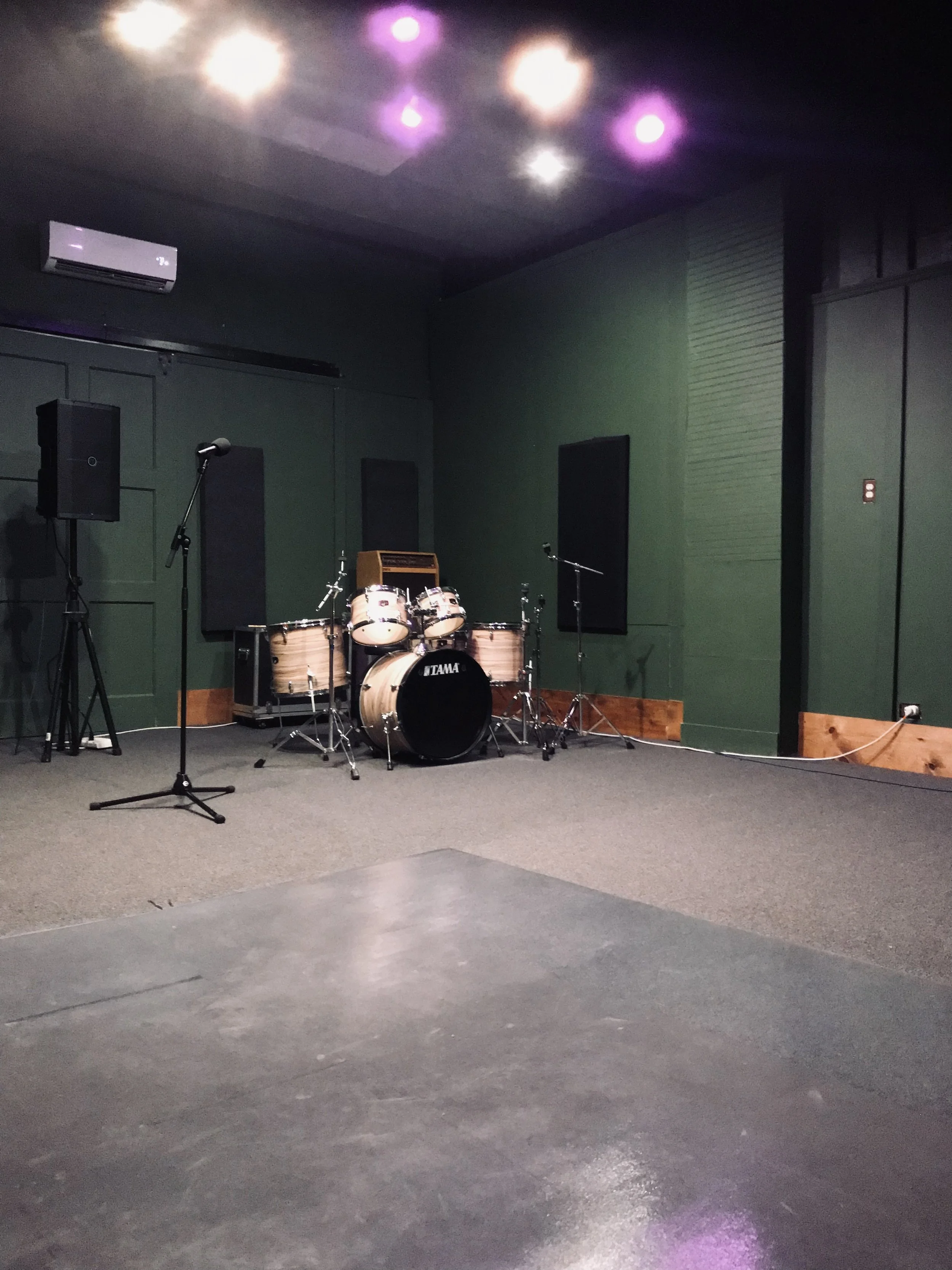 Mackie Thump 212 PA Speakers, Presonus Studiolive AR16c, Mics, and house drum kit (shells and hardware) all provided.